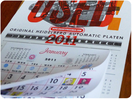 since calendar days and dates repeat every 2, 6, and 11 years, cranky pressman designed a faux 1966 calendar to be reused this year, 2011, with the encouragement to use it again in 2022. cool concept, and super-cool looking! see the whole profile at under consideration.