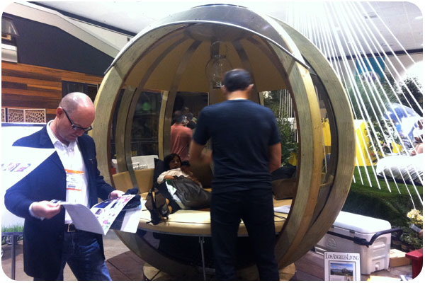 this past weekend, i took advantage of the designer’s pass to dwell on design to take in all the amazing products, interiors and fixtures exhibited there. i spent a lot of time in the outdoor section, looking at how far prefab housing has come. there were a few sample homes, like this one above, along some inflatable homes, beautiful airstreams and trailers like the cricket trailer and this rotating, hang-out thing, the g-pod.
