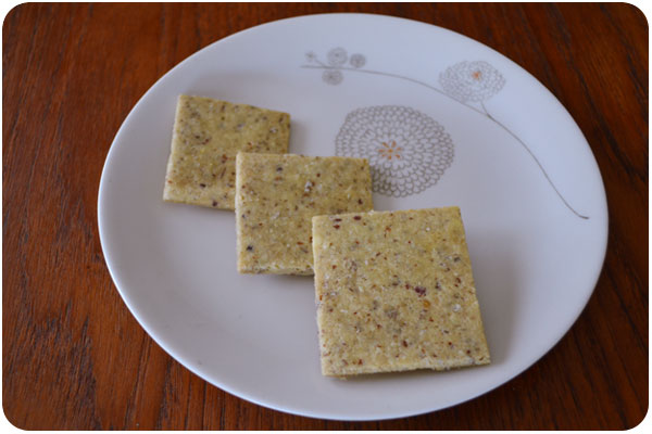 if breakfast salad has become my favorite meal, these almond flour crackers have become my favorite snack. i was just looking around one day and found elana’s pantry where you can find great cracker recipes using blanched almond flour: sesame, walnut, herb, mixed seed & nut, fig & rosemary…! the basis is often the same ratio of almond flour, egg and salt, and then use the ground nut or seed and oil of your choice. mine look just like hers because rolling between 2 parchments and pre-cutting really does make a uniform cracker. these are a great go-to when you need a little salty crunch, or if you need a substrate for your smoked oysters. unlike normal crackers, you can eat just 5, because they are far more filling.