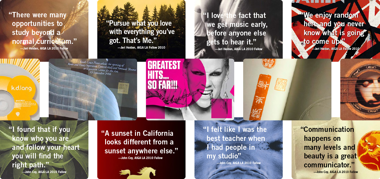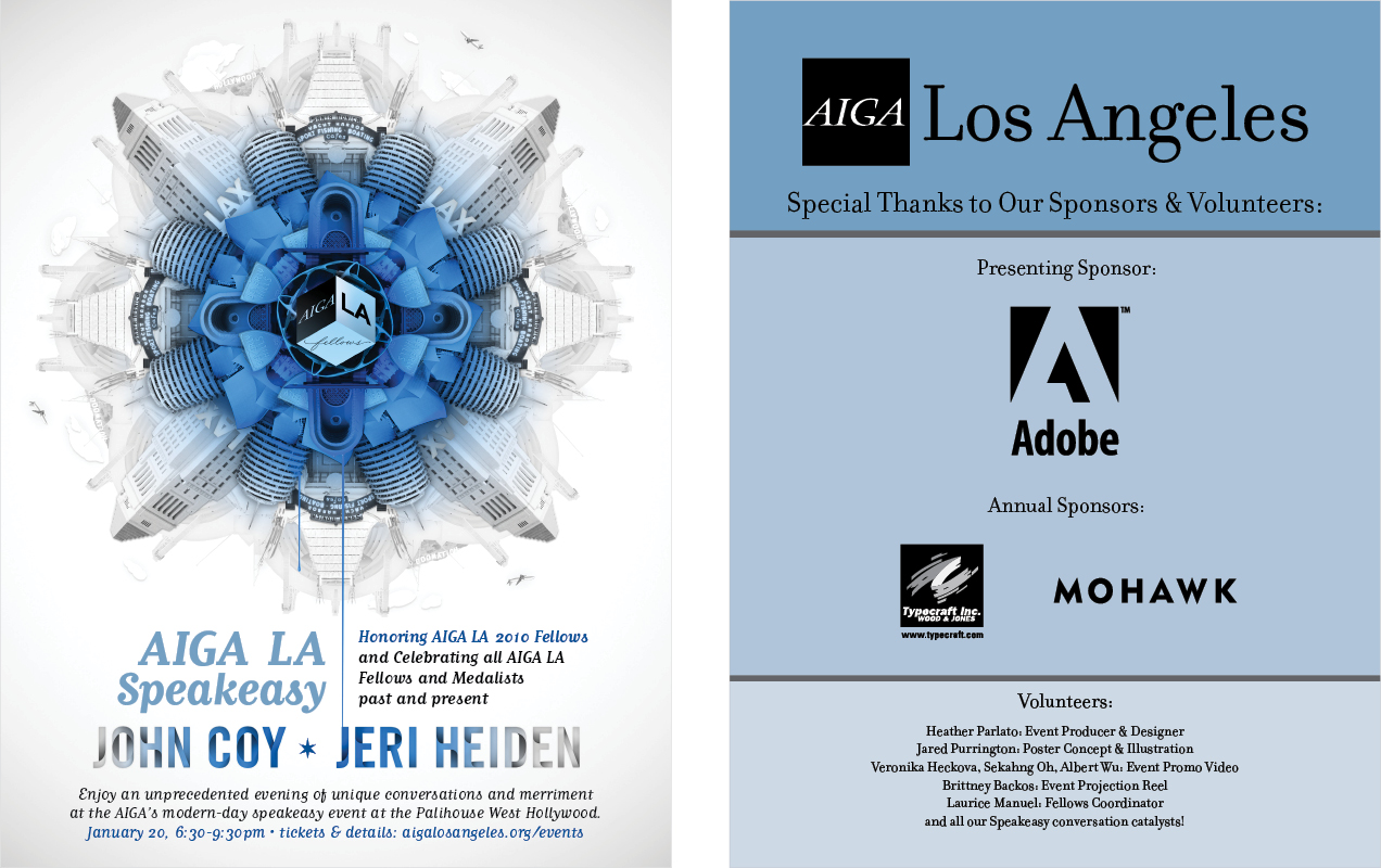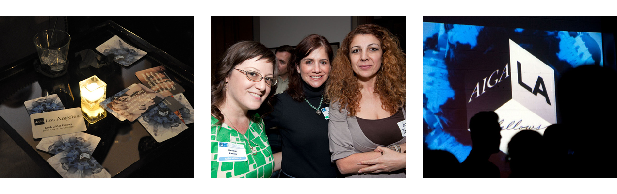 Once on-site, attendees were given gifts of scout books, bookmarks, and tables were decorated with a series of 54 different cards depicting various design excerpts from each fellow’s body of work with some of their most inspirational quotes. The event sold out beyond capacity, and the AIGA LA board and both honorees were very pleased with the celebration of their work.