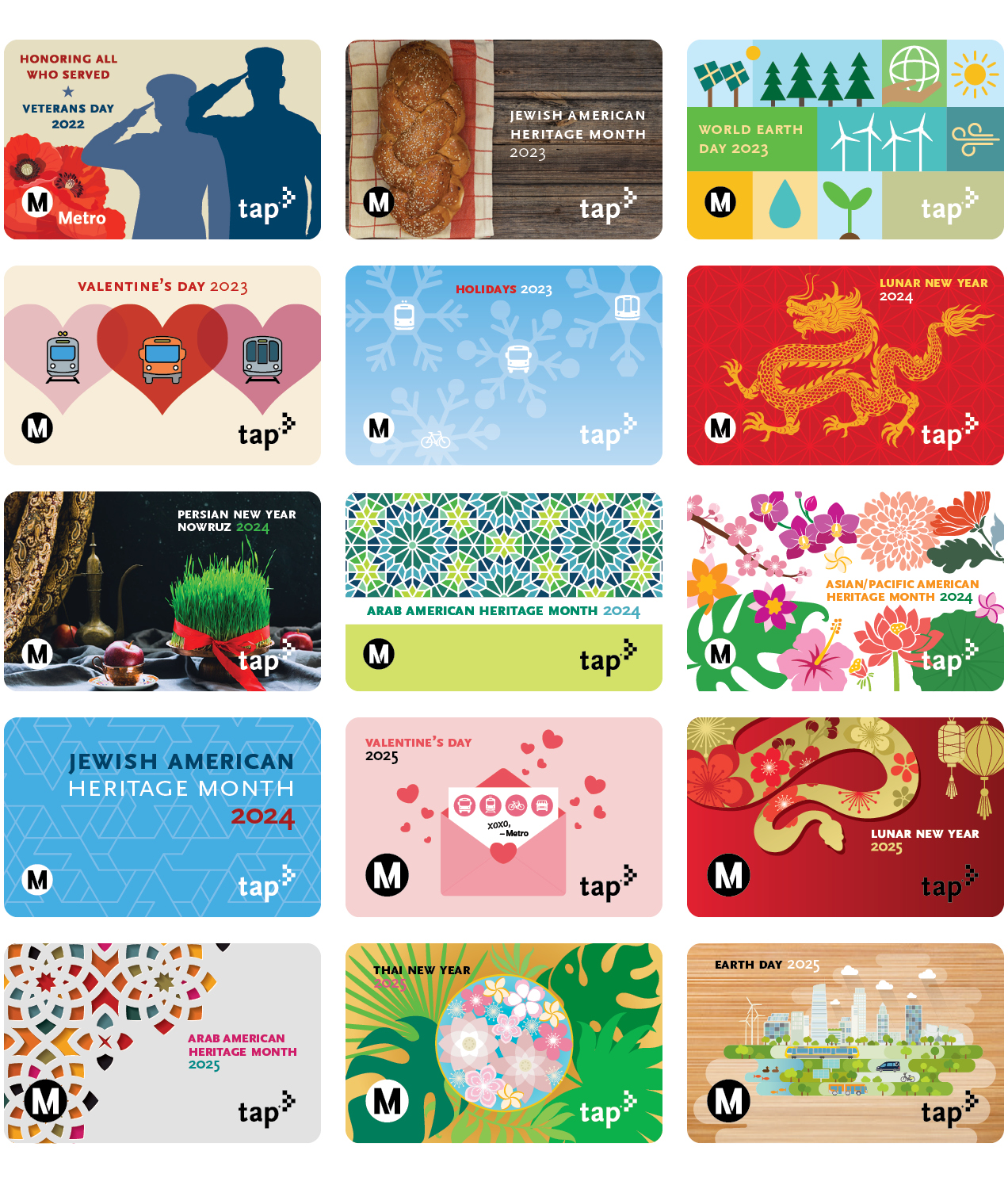 Commemorative TAP cards are a very popular item for transit riders – some people collect them all! Projects are split up among the design team and we each get to work on some really fun designs, celebrating culture recognition, holidays and seasons of the year. Below is a selection of my favorites.