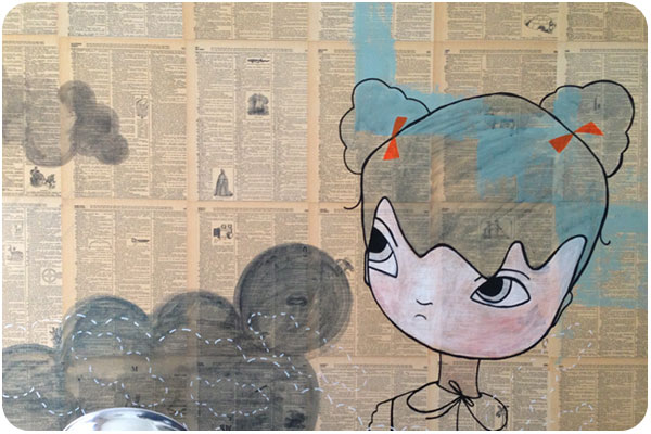 we chose the ace hotel since we’ve enjoyed the palm springs location, and selected a back room on the quiet side of the hotel. it was quiet, indeed, and quite comfy. i liked their idea of using an encyclopedia as wallpaper with these cute paintings.