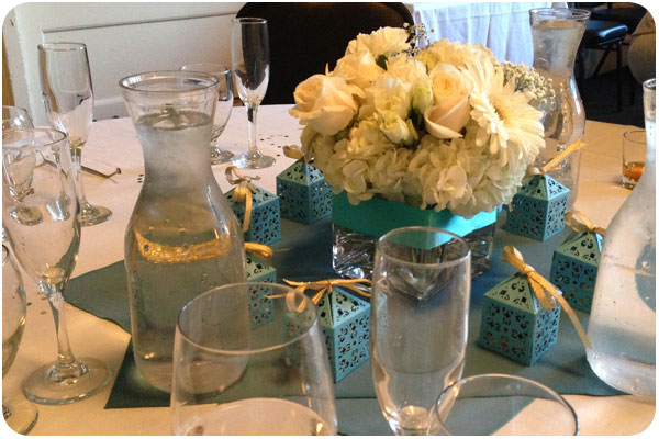 pretty wedding colors in creme and just-off tiffany blue. we joined the bride for champagne mani-pedis the night before, so i got to take this color home on my toes too. super cute!